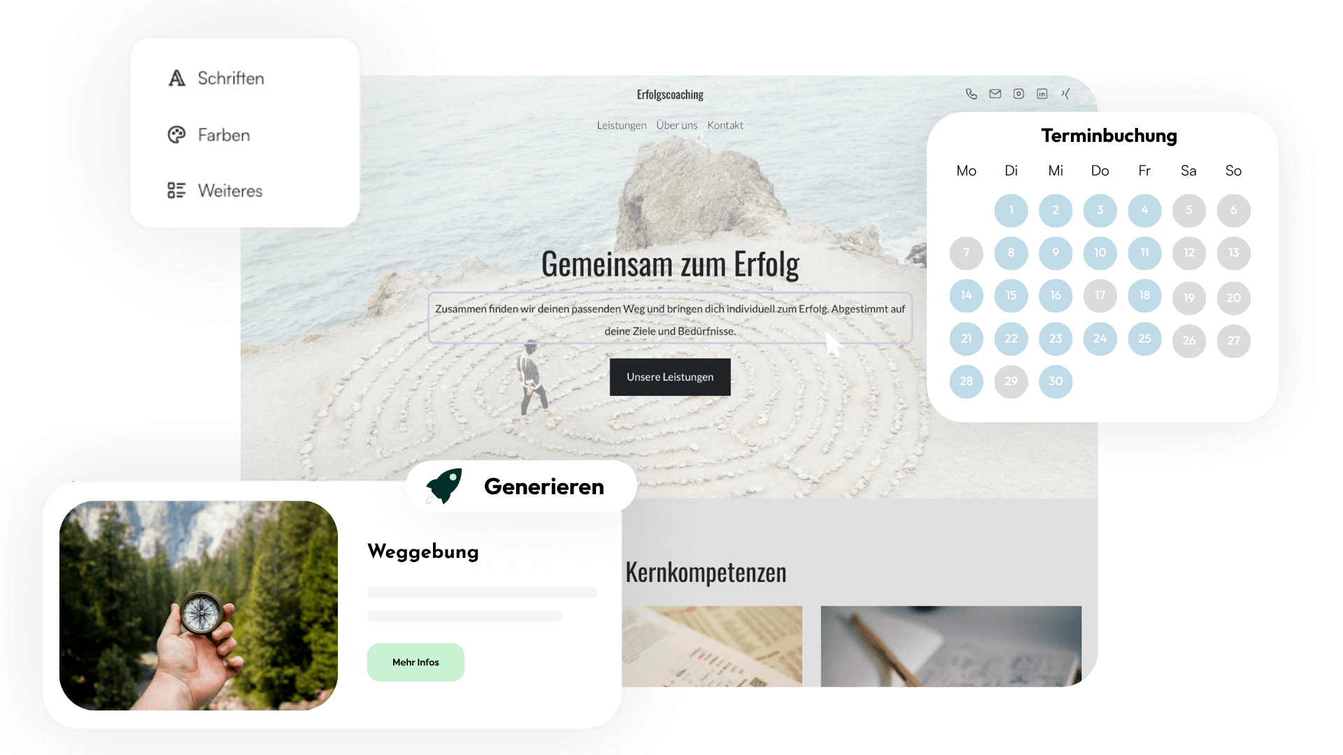 In Minuten zur eigenen Coaching oder Berater-Website. Ohne Vorkenntnisse und mit Google-Optimierung, Rechtstexten & mehr.