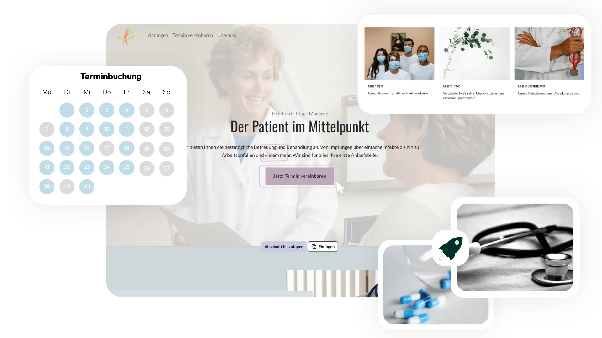 Hier kannst du richtig punkten. Du teilst wichtige Infos über deine medizinischen Services, stellst dein Team vor, erklärst deine Behandlungsansätze und gibst praktische Gesundheitstipps. Das hilft deinen Patienten wirklich weiter – und zeigt, dass du mehr bist als nur ein Termin im Kalender.
